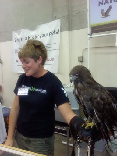 Being a county fair, urban farming got a major plug. Lots of prize tomatoes, squash, and other veggies plus the newly allowed (within the city limits) chickens, ducks, and dwarf goats. Also on display, raptors that eat said chickens, ducks, and goats.