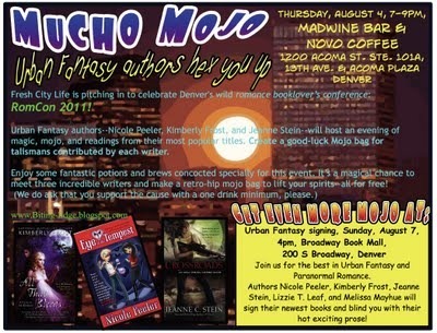 Don't forget...Mucho Mojo Nicole Peeler, Kimberly Frost, and Jeanne Stein, Thursday, Aug 4, 7-9pm, at Madwine Bar & Novo Coffee, Denver.