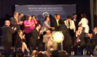 The big news is that last week my sister, Sylvia Acevedo, was sworn in as a commissioner in the White House Initiative for Educational Excellence. It's no secret that Sylvia is the smart one of the family, seeing as she is a Stanford grad with a slew of awards for business and community achievement. Always the forward thinker, at the first meeting of the commission candidates in the White House, she wanted to make sure she stood out from the other hyper-Type-A's. While everyone else wore conservative business attire, my sister had donned an all-white outfit with gold and black piping. And it worked. President Obama noted Sylvia and made it a point of greeting her.
