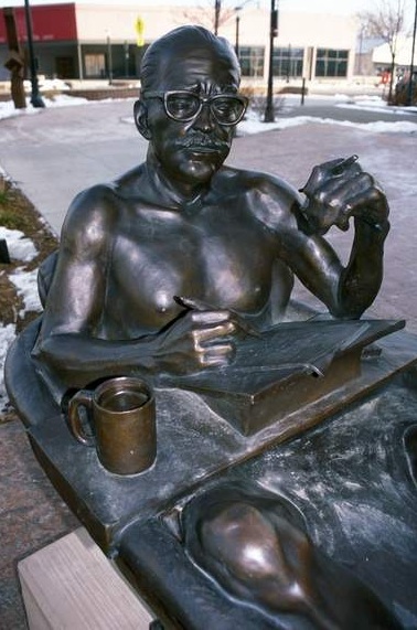We toured the remodeled downtown, which was decorated with statues ranging from the whimsical to the provocative to the commemorative, like this one of Grand Junction homie Dalton Trumbo--the acclaimed novelist (of the horrific Johnny Got His Gun) and screenwriter (Spartacus)--depicting the blacklisted writer scribbling in his bathtub.