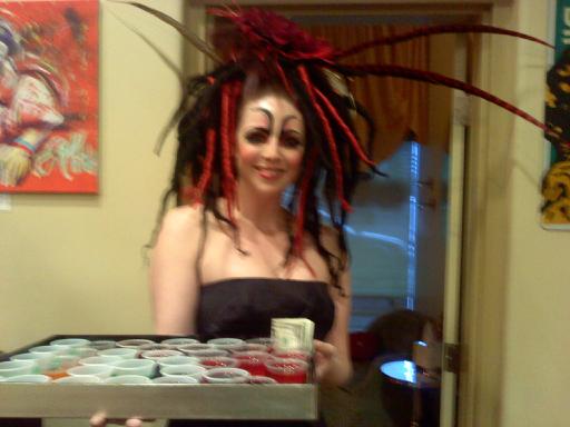 The evening progressed to an art show at Vain Salon, uptown home to the hippest hairstylists in the city. Jamie modeled make-up and hair while handling out Jello shots (there's always room for Jello!)