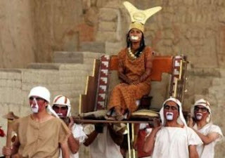 ASenhora de Cao, sacerdotisa-chefe no Peru do século IV (encenação modernabaseada em achados arqueológicos)Os iroqueses e os cherokees recordam que as "fabricantes de mocassins" (mocassins-makers) tinham o direito de atuarcomo "travão de guerra", recusando-se a abastecer homens quequisessem ir para a guerra sem o consentimento do conselho das mulheres. EmYunnan, o povo Lisu conta que os homens tinham de parar de lutar se uma mulherde qualquer dos lados abanasse a saia para pedir um armistício. Do mesmo modo,na ilha Vanatinai, no Pacífico, uma mulher podia dar o sinal de guerra ou depaz tirando a saia exterior. Isto é autoridade feminina. Não se trata de umafantasia. É a realidade histórica.