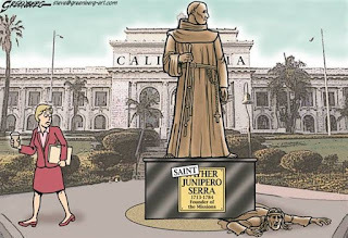 Nem a atitude fria para com os povos indígenas, cujaescravatura, fome, flagelações e outros abusos no sistema missionário estão aser postos em causa pela planeada canonização de Junípero Serra. (Ver 8:50>> no vídeo com link, onde os descendentes falam sobre raptos, sobre os seusantepassados que passavam fome com 700 calorias por dia, enquanto eram forçadosa trabalhar, e obrigados a ajoelhar-se em azulejos durante toda a missa,mantidos em fila por guardas com chicotes e baionetas). Nestas duas importantesquestões de justiça social, as mulheres e os povos indígenas, o pontífice surdonem sequer finge querer mudar.