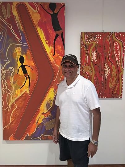 Munganbana means Mountain Water and aptly describes his work – powerful and peaceful – and the land from which he comes – crystal cascades and volcanic lakes. Munganbana is of the Jirrbal, Bar-Barrum and Tableland Yidinji tribes of the North Queensland rainforest, a World Heritage-listed area. He specializes in limited edition lino prints, acrylic on canvas, greeting cards, batik wall hangings, batik dress lengths, and silk scarves. Munganbana has a workshop in his own gallery in Cairns, one of the few Aboriginal artist-owned galleries in the region and his work is very popular with international tourists. He regularly does art classes for schools or has school groups come into his gallery for workshops. He has a book with 200 paintings and stories to go with them. See https://munganbana.com.au/books/