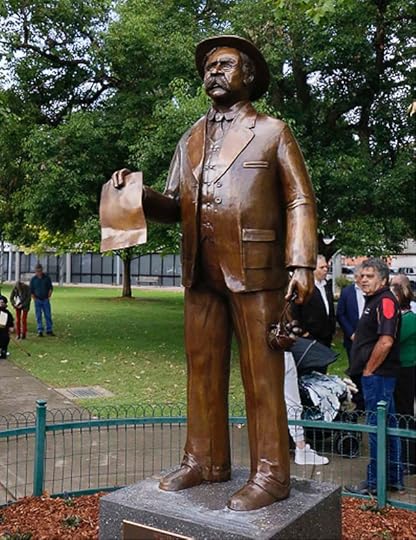William Cooper statue in Shepparton, Victoria. He is holding the letter of protest to Germany
