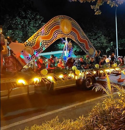 Munganbana Norman says – I have a dream of having a Big Boomerang icon for Cairns. To get some community support and publicity, I made a very big boomerang and put it on a float in the Cairns Festival Parade last weekend. Recently, it got some coverage in The Cairns Post and ABC radio Cairns will cover it soon. I hope that this project will get the support of Cairns, especially as it would be the only big icon in Australia expressing Aboriginal heritage.