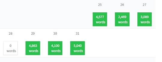 The writing progress I’ve made so far on Book 7 of Love by Glitter Bomb. Not horrible, but I need more days close to 5k words to get back on schedule.Good luck to everyone participating in camp! My the words ever be in your favor!