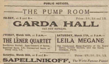 During the twenties, Garda was making a name for herself as a popular concert singer, recording artiste and broadcaster, although critics were still concerned about her violent vibrato and doubtful intonation as opposed to her vocal good points of agility and wide range. She was singing with the finest singers of the day, as can be seen in this article of 1928: