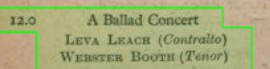 A BALLAD CONCERT – 29 March 1934 15.50 Regional Programme London, Margaret Bissett (contralto), Webster Booth (tenor) (National Programme)