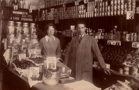 When my parents returned from Canada they bought two general shops, selling groceries, sweets and fruit, one in Apsley Street, Partick, where my grandfather worked, the other in Springburn where my parents worked with the help of a ‘girl’. One of the ‘girls’ was called Helen and is pictured in a photograph with my father, showing the produce of the shop, neatly set out on the shelves, with prices marked by my mother in bold figures. As far as I remember the shops were sold shortly before the war, as my father had anticipated the outbreak of war and planned what he would do when war was declared.