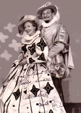 Webster Booth and Anne Ziegler starred in this sumptuous production of Merrie England at Luton Hoo to celebrate the Coronation of Queen Elizabeth the Second in 1953. They are pictured in this small photograph.