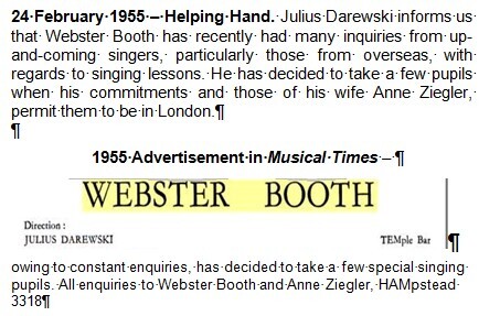I studied with Anne and Webster for five years and did my ATCL and LTCL singing diplomas under their tutelage. I was delighted when they asked me, at the age of nineteen, to be Webster’s studio accompanist when Anne was away on other engagements. Although we had our ups and downs, we remained close friends for the rest of their lives and, as you can see, they certainly exerted a very strong influence on my own life. Anne was kind enough to leave me a legacy when she died in 2003.