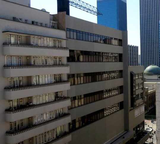 Polliack’s Corner, the building with the balconies to the right of the photo. Anne and Webster’s studio was on the eighth floor. Corner Pritchard/Eloff Streets, Central Johannesburg.
