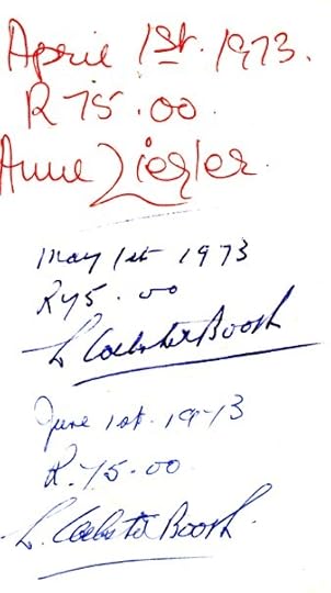 They emigrated to South Africa after the war. Freda had divorced her husband and in the early 1970s she and her father shared Anne and Webster’s first floor flat, paying R75 a month for it. At the time Freda was working for an Estate Agent in Knysna. Along with the letters, Freda sent me the rent book for the property.
