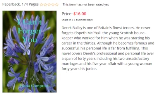 Once I started reading Fiona Compton’s romantic novel, I could not put it down. I soon became involved in the emotions and events of the main characters’ lives. Derek Bailey attracts females and trouble wherever he goes, due to his charisma and talent. How the women in his life deal with subsequent events must touch a chord in the heart of every female reader who has ever fallen prey to the charms of a philanderer. The writing style is flowing and the dialogue authentic. Place descriptions set the scene firmly in 20th-century Britain. I particularly enjoyed the Scottish dialect (the author having been born in Scotland, this too is genuine!)and the descriptions of daily life in London. This is no run-of-the-mill romantic novel. Due to the author’s musical knowledge, “I can’t forget you” has a depth and authenticity lacking in most novels of this genre. You will not want to put this book down before discovering what the final outcome of the hero’s romantic entanglements is to be.
