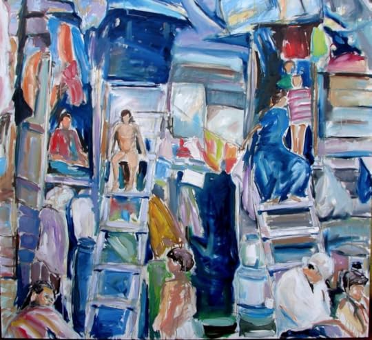 Painting: Waiting by Zahid MayoI lived there as a teenager, trying to spend my boarding school knowledge on the children and adults, advocating cleanliness, hygiene and education. I was treated like an entitled prince from a foreign state. I was offered a small bucket to fill and defecate on a vast tract of barren land across the road.