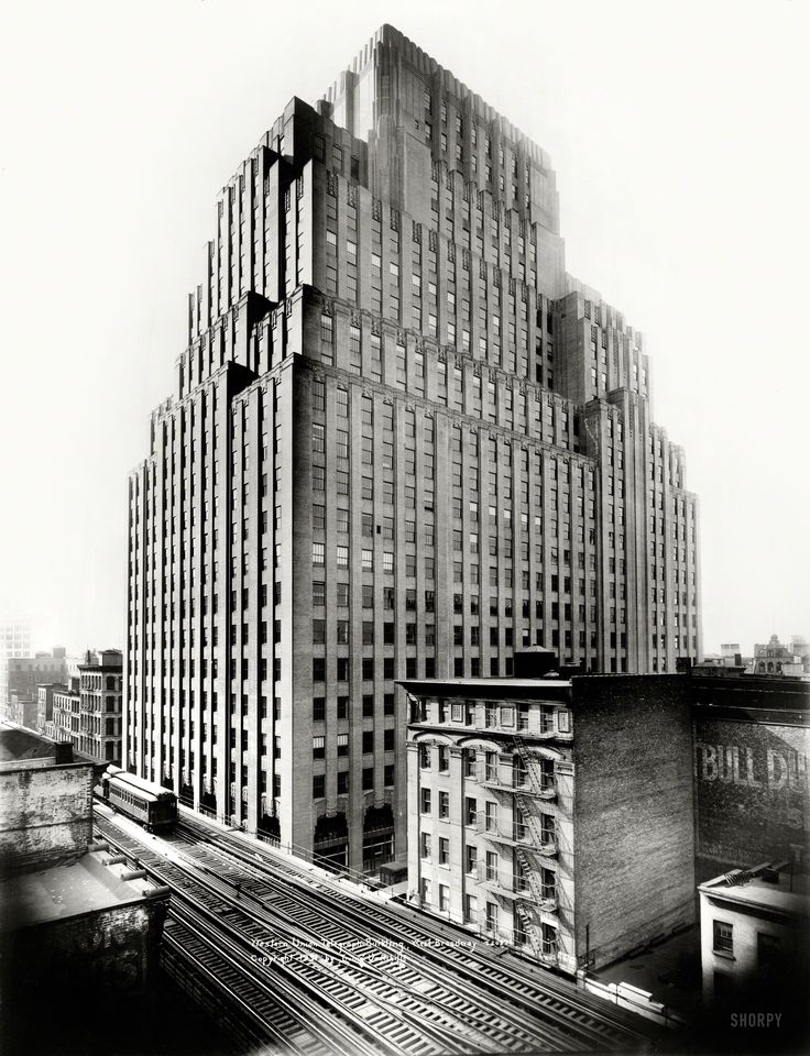 Today's image shows the elevated trains running in front of Ralph Walker's 1930 Western Union Building on West Broadway. The building, which was the telegraph company's headquarters until 1973, is just one of the many marvelous places we'll be visiting on our walking tour this Sunday, December 13, at Noon that explores the history of West Broadway.