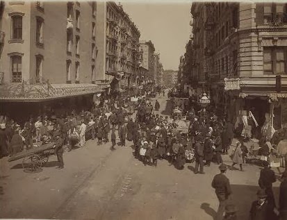 So, we turned to Don Rogerson, author of Manhattan Street Names Past and Present to see if he knew anything--and lo and behold, he was able to almost immediately identify it as Ridge Street, noting that the building on the right side of the postcard is still there.