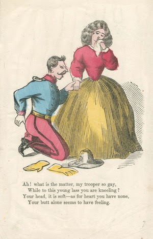 The Times went on to criticize the "namby pamby" verses of modern valentines -- and their expense. "Thousands of dollars are annually expended in the United States on their purchase.... Every store at all connected with the stationary [sic] business has been blazing for the last week with pictures of hideous men and women...each with some lines of doggrel [sic] written underneath them." (Did the Times not have copy editors in 1853?)