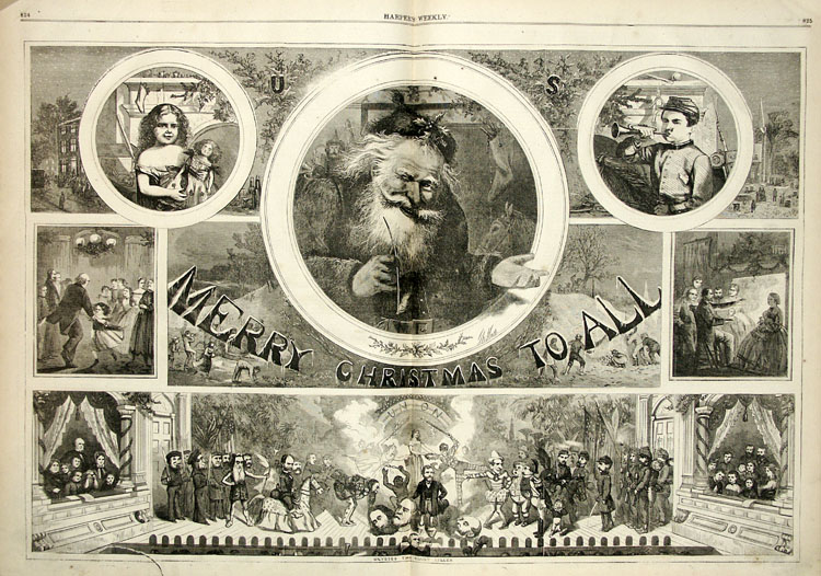 Despite Nast's pointed political statements, he had a soft spot for the holidays. Beginning in 1863, he would draw pictures of Santa Claus or families celebrating together for Harper's, culminating in 1881 with the image at the top of this post, which is still seen by many as the iconic depiction of St. Nick.