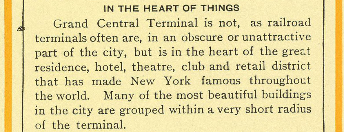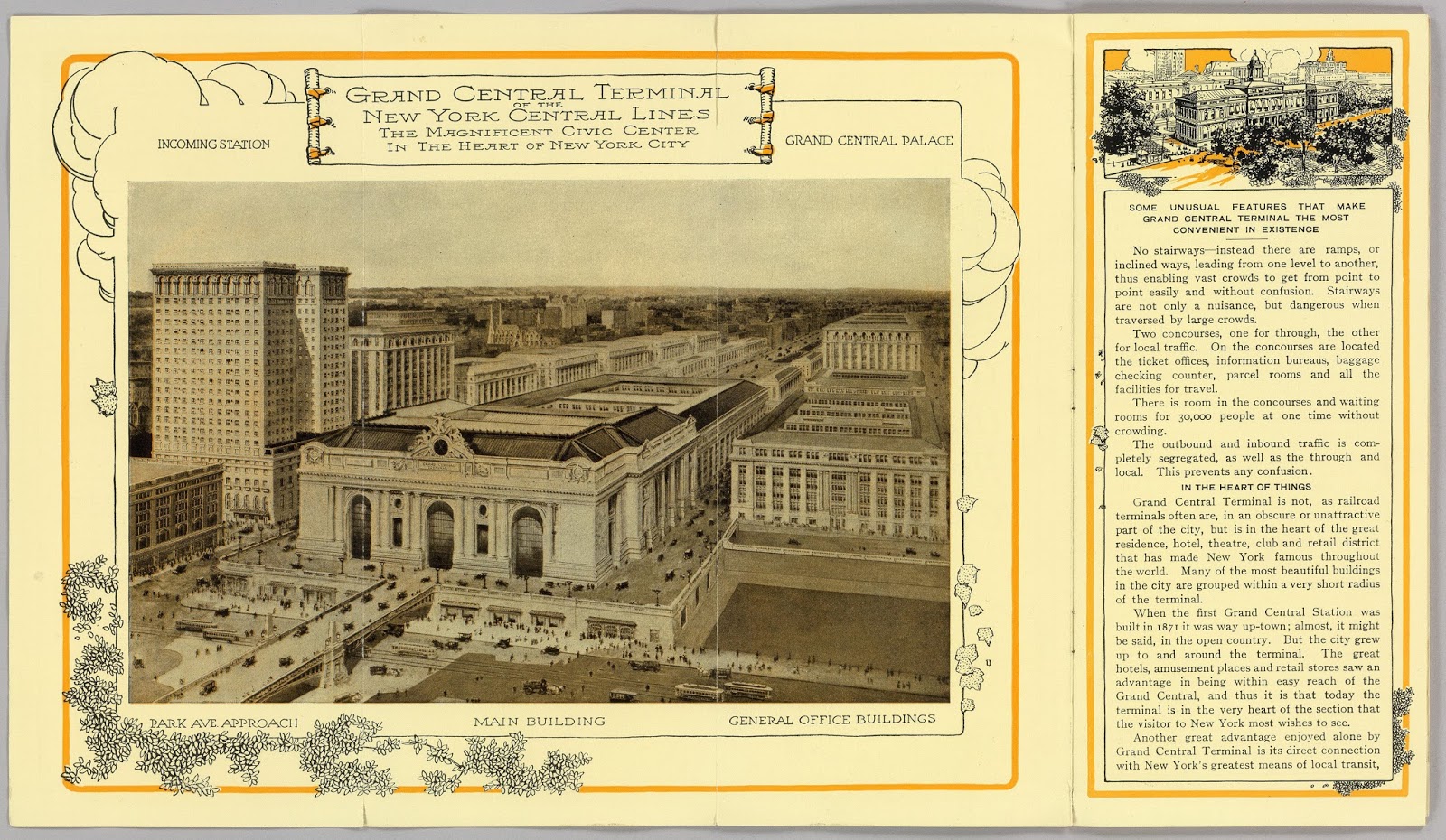The above advertisement for Grand Central Terminal, produced in 1918, shows the area around Park Avenue and 42nd Street before most of the current skyscrapers were built. (You can see the Yale Club, which James wrote about for Curbed a couple of years ago, on the Vanderbilt Avenue side of the terminal; it opened in 1915.)