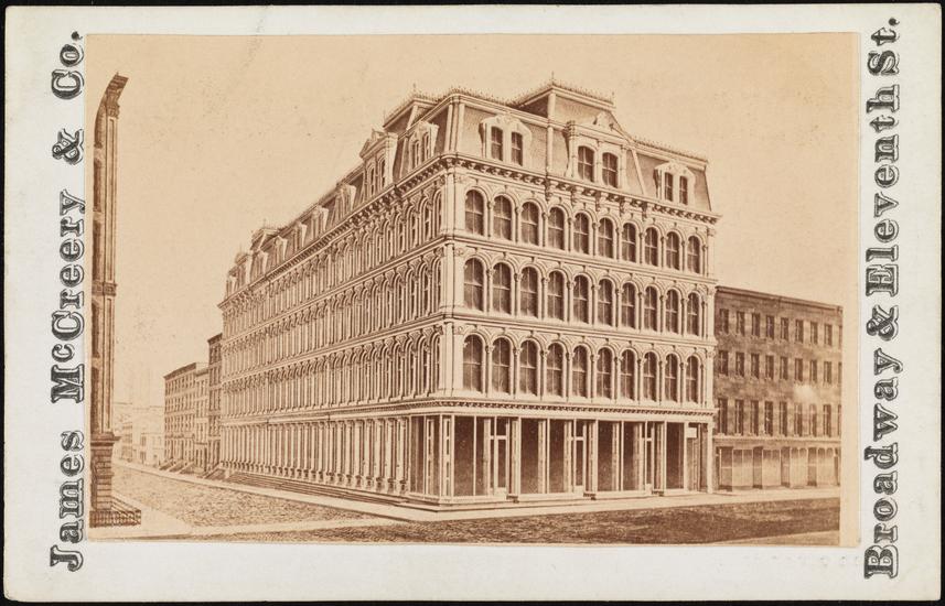 In 1868 -- one hundred and fifty years ago -- the department store James McCreery and Co. opened at the corner of Broadway and 11th Street. While the city had been expanding northward since the layout of the famous grid in 1811, that growth had always been slow, and for many people, Greenwich Village remained the hub of the city. The stretch of Broadway that James McCreery picked for his new store, across the street from Grace Church, had tremendous curb appeal.