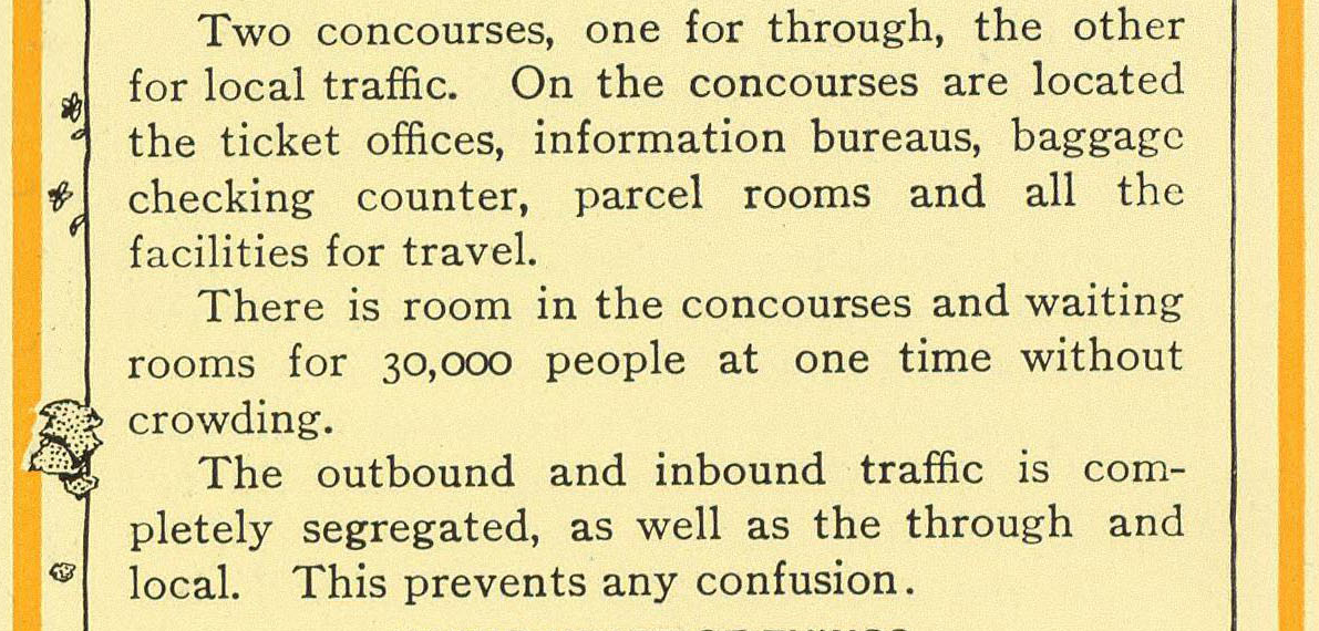 On the right side of the flyers is a partial list of some of the "unusual features" that set Grand Central apart from its competitors: