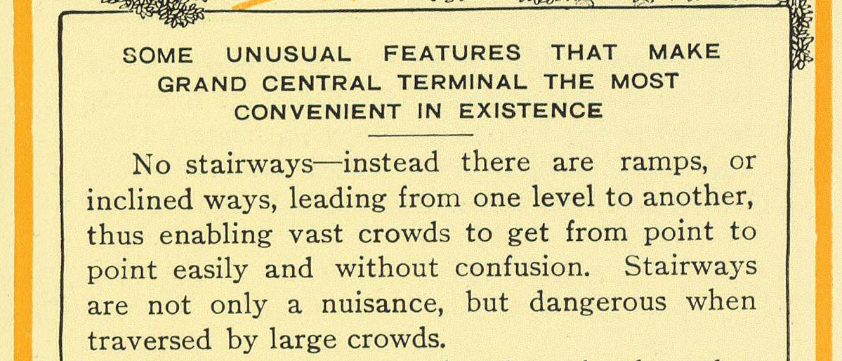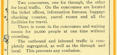 Indeed, this novel system of moving pedestrians around the terminal was a great contrast to the deep staircases at Penn Station. It was later adopted both by other railroad stations and classic airport terminals, such as the TWA terminal by Eero Saarinen at JFK.