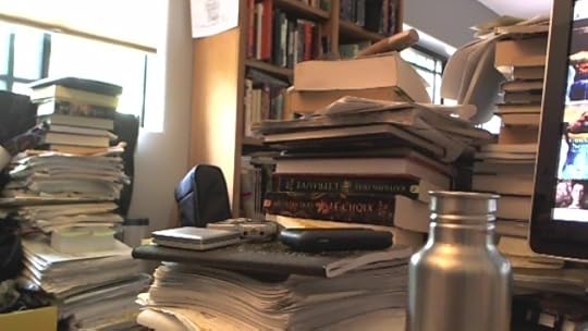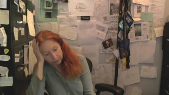 Lunch break here: I am on chapter 77 and am stunned by what is happening. I really didn't see this coming at all. This is where NOT outlining can be useful.I did a blog interview on world building. This is the first half of the blog: http://bit.ly/OBXI1M The second half will be posted in a few days.In the picture below I am staring at nothing. I stare a lot before the typing starts.There is a reason there are no "author" reality shows.