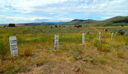 Along the way, the tour guide took us inside the Hanging Building, where a heavy beam still shows the marks of ropes used to lynch desperadoes who had terrorized the region, notably by nearby Bannock sheriff Henry Plummer's gang. The town of Bannock had hired Plummer to enforce law in the mining towns, little realizing Plummer was the brains behind a string of stage-coach hold-ups and multiple murders along the routes between the territory's communities.On January 14, 1864, the Vigilance Committee arrested five road agents living in Virginia City -- Frank Parish, Boone Helm, Hayes Lyons, Jack Gallagher, and George "Clubfoot" Lane -- and summarily hanged them. (We had earlier visited the historical museum in the first floor of the local library, where a jar contains George Lane's severed clubfoot.) Their remains -- minus the foot! -- were interred on Boot Hill, but their spirits are said to still haunt the graveyard.