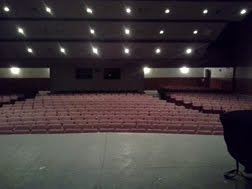 Another account we collected was from a long-time theater prof who told us he was working late one night in his nearby office and heard a racket in the theater. Like the previous account, he was alone in the building at the time -- or so he thought. He found the main corridor theater doors locked but opened them anyway and went in to find all the stage lights inexplicably on. He checked the small locked light booth and found it empty, and then entered the main Auditorium again to call out if anyone was there. At that moment, all the lights went out (which could only be performed from the "empty" light booth.)