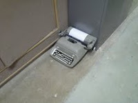 We next moved to the costume shop below the main Auditorium, where cast and crew have reported tapping noises from an old electric typewriter stashed in the hallway next to the shop. (Before the investigation, Wraiths team member Doug had placed a sheet of paper in the typewriter even though the machine was unplugged and the ribbon didn't work.) We checked the machine during the investigation for elevated EMF -- and for typed words -- but no joy in either case.