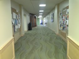 A late-night tech saw a full-bodiedapparition at the end of this hall.We moved our investigation to Taylor Hall during closed hours for that building as well. We decided to start on the second-floor where a late-night-working tech saw a full-bodied apparition standing in the North Hall main corridor, a figure that had disappeared moments later. (During an earlier interview, she confessed she's refused to work in the building alone late at night ever since.)