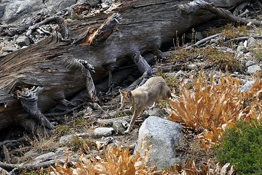 Yesterday on a walk near Lake Tahoe (around where Alpine Meadows meets the Granite Chief Wilderness), I came across two coyotes. I saw the first about 100 meters away, trotting over the granite. Without much evidence, I’ll describe her as a female (see the notes). She paused to look at me…