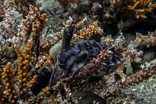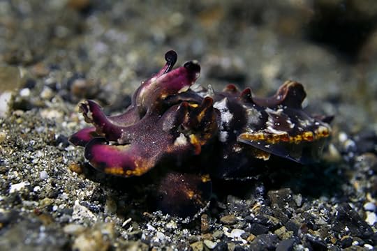 A couple of weeks ago I did my first dive for a while at Cabbage Tree Bay, in Sydney. In a vague way, the bay has two sites, Fairy Bower and Shelly Beach, with a shallow expanse of sand separating them. Early winter is Giant Cuttlefish mating season. This one above, small but purposeful, was patrolling the shallows on the Bower side. I encountered him at the end of the dive, the bulk of which was taken up with a swim from the Bower to Shelly, and two other cephalopods encountered on the way.