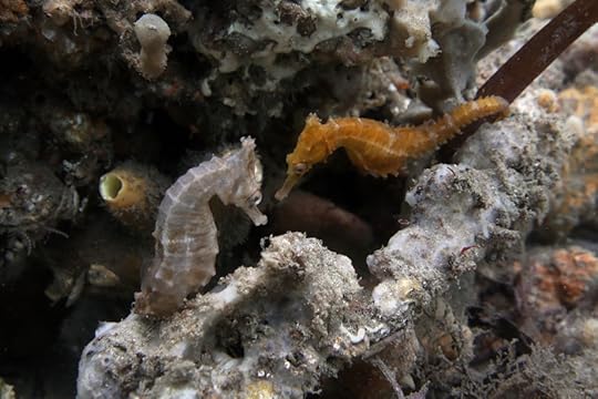 With a hint of irony given the name, Whites seahorse, the most common species at my New South Wales dive sites, appears in many color forms. Ive seen at least four colors that are markedly distinct yellow, orange, pale grey, and dark brown and at least some intermediates between these. I came across the pair below last week, and they nudged me into doing some reading.