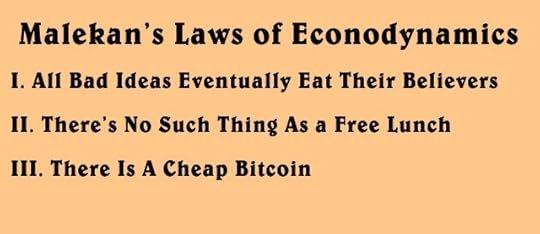 Which brings us to my second and third laws of econodynamics. Although there’s no such thing as a free lunch, there is such a thing as a cheap Bitcoin. The appeal of decentralized money only grows now that the print-money-crowd is in turmoil. Aside from a fixed and algorithmic inflation schedule, the other benefit of crypto in such a world is as a vote. A vote for the growth of the platform, and a vote against a legacy system soon to be consumed by the greater of two evils.