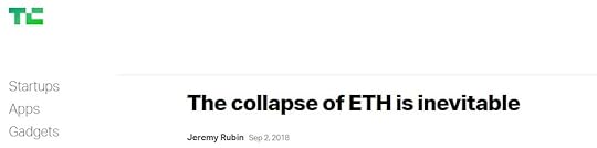 This tail-wagging-the-dog phenomenon has been present in crypto markets from day one. There was no shortage of bullish news in December, and there is no shortage of bearish analysis now. Since price determines news, then the great crypto winter of 2018 necessitates a strong dose of bad news. Since Ethereum has fallen harder than Bitcoin, then it generates even more negative news flow than it’s older sibling. The more ETH falls, the worst the news and analysis gets. First it was a shitcoin headed to sub double digits, and now it’s so economically flawed that it’s going zero.