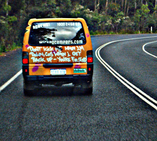 If you are curious about the orange van in the picture, I spotted it on the road in Australia. Click on the pic to enlarge it and read the words scrawled on it!
