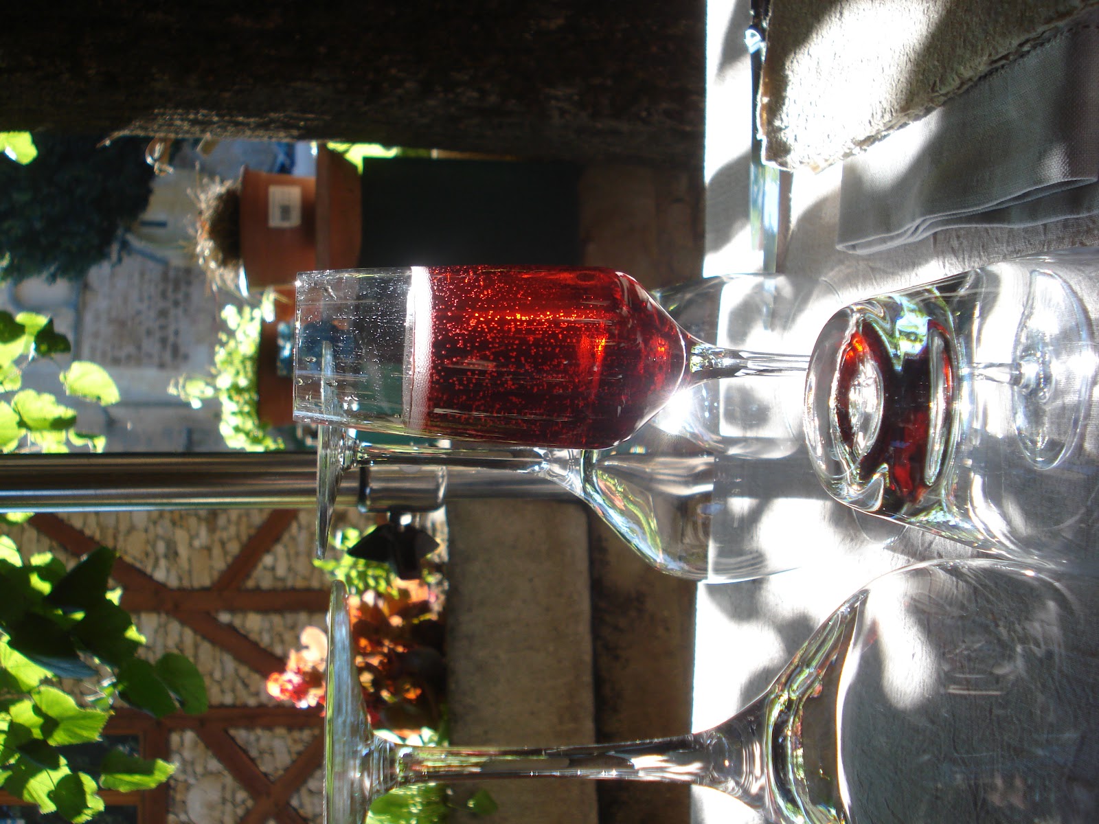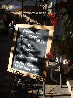 me, outside Lou PeyrolLast days of holidays are always busy and always sad, but there’s also the readiness to go home. That’s how it is for me; I’ve enjoyed my three weeks in France but now I’m starting to miss my garden, my routine of work and being touch with friends. So, we’ve decided what we want to wear for the journey home, packed the rest into the car, and swept out the mill to leave it clean and tidy for Jenny and David. Last night we went over to Lou Peyrol again and this time we both had Kir Royales as an aperitif. We never have blackcurrent liqueur with champagne once we're home, but it is lovely to do it now and then, and I think Lou Peyrol is our favourite restaurant. The chef manages to get such intense flavours into the food that each course is a delight, from the amuse bouche and the tomato foam with a miniature savoury tart to the ravishing desserts. Bill tried the ballotine de canard on my recommendation and groaned in pleasure. As it was our last visit for a year, he decided to treat himself and go for the steak and declared it the best steak he’d ever eaten, while I had the delicious monkfish on a bed of black rice and chorizo. My chocolate dessert with roasted hazel nuts was the kind of heavy semi-solid mousse that sticks to your teeth, and Bill had a vacherin with strawberries and red fruit coulis…