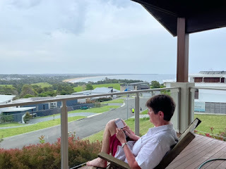 You probably won't believe me but there is a stonking wind howling around the balcony and it is so unpleasant we are sitting inside. Dh is reading Musk's book about building Tesla cars and me writing this and then going back to my story. I thought Australia was this pleasant, sunshiny country where tennis players melted on court because the weather was 40 degrees and climbing.Well, I kid you not. I would not class outside as cold. Not exactly. But it is not pleasant to be out. If you find a sheltered spot out of the wind, the temperature makes you break into a sweat. Beaches must be wind tunnels of stinging sand, and we know from yesterday's walk that the sea is not for swimming as it is too rough.