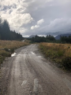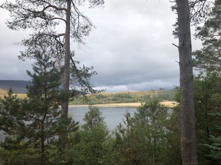 So we set off on a three mile ramble and climbed onto one of the logging roads which you see in the pic. As we went up the hill we were in full view of the opposite side of the loch, where one white house stood amidst trees. It sounded as if a dog there could see or hear us and barked its head off. Must have annoyed the owners, because it took us quite a while to make it up the steep incline!