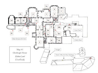 Entering at fig. 2, we had the Billiard room on our right (fig 1) and my first impression on walking into Ardverekie House was of death. The entrance hall is a beautiful wood panelled space, but around the edges of the space between ceiling and wall are the heads. Deer skulls, some fully restored with fur and eyes, and all with antlers. When James Ramsden, the millionaire Huddersfield industrialist who built the existing house, went hunting, he aimed his gun at the perfect 12 or 14 point specimen.