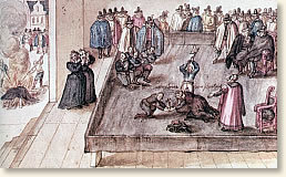 Then Mr. Dean [Dr. Fletcher, Dean of Peterborough] said with a loud voice, 'So perish all the Queen's enemies', and afterwards the Earl of Kent came to the dead body, and standing over it, with a loud voice said, 'Such end of all the Queen's and the Gospel's enemies.'