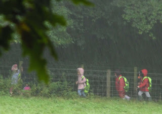 The weather was dismal but meant we had the place to ourselves. Away in the distance we saw the clutch of pre-school children doggedly scrambling after their leader through the sudden downpour which didn't seem to dampen their spirits at all.
