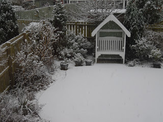 Our guests were due to leave us for Italy on Friday 29th. As of Thursday night at ten minutes to midnight, the two missing cases were delivered to our doorstep. As someone said dryly "Made the delivery inside three days, but only just. Now they don't have to pay compensation." True, except they are going to get a claim for a very expensive suitcase - the only one to arrive when they did - which was "damaged beyond repair " and has gone off to Italy sealed up with strong duct tape.Snow arrived here on Friday on purpose to complicate matters further. The snow fell lightly as they left our drive in convoy to return the hire car to Team Valley and then the three of them, three suitcases and a pushchair all squeezed in with DH for the trip to the airport. By the time DH came home the snow was lying and making the hills very skiddy. Since we live on the side of a hill, it was a bit of a concern, but he made it safely. Everyone breathed a sigh of relief but then came the news that their flight to Heath Row was delayed - would they make the connection to Italy?