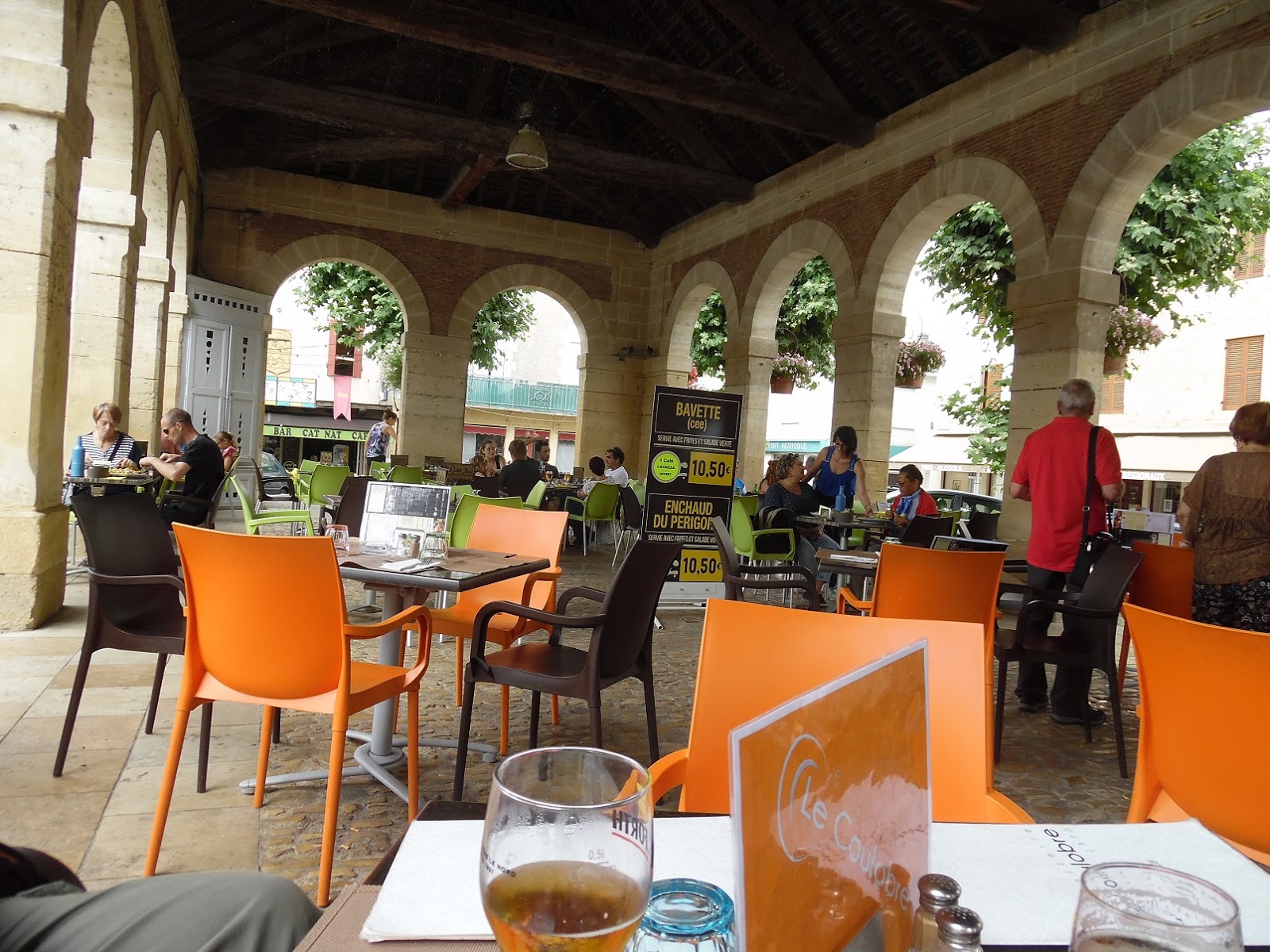 Then we turned back into town and headed for the market square. Lunch service was beginning, so we chose a quiet corner by a pillar under the old market hall (called the Halle) roof and sat back to enjoy the surroundings. http://www.northofthedordogne.com/lalinde.php
