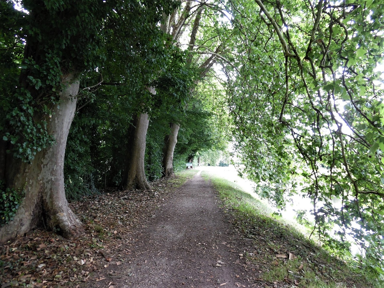 We walked down to the river, which is running faster than we’ve ever seen it in many years of visits. Usually there are sandbanks and lots of weed clumps, but right now the water is flowing very fast bank to bank. Lots and lots of swans on the opposite bank where the trees swoop down to the water – a whole flock of swans - maybe fifty or seventy, just cruising the shallows.