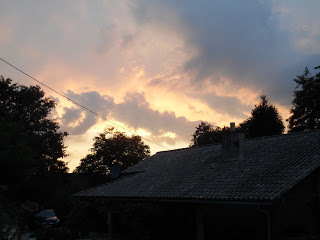 On Tuesday saw a single deer leave the sweetcorn and bound up the bank! Seems like it’s a deer thoroughfare. The heat is ramping up again, 38 degrees according to the thermometer in St George in the afternoon. We bought what we wanted at Madam’s little shop but decided it was too hot to walk around so we headed straight back home – and enjoyed the car’s air conditioning! It was cloudy all day and so hot we slept downstairs in the mill room that night. A violent thunderstorm woke me, and I watched the sheet lightning through the glass doors.Wednesday night it got cooler after six, so we slept back upstairs and left the windows open. (We’ve tried all tactics – windows open, windows shut, shutters closed and windows open, everything at half-mast but nothing is ideal. It stays uncomfortably hot until about three in the morning and then the temperature plummets to about 16 degrees. That’s when I wake up feeling cold. In the morning we count our insect bites. I’ve been thinking of a mosquito net over the bed, but there’s nowhere to hang it. Perhaps more garlic is the answer!