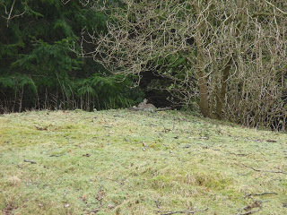 On the other hand, it may be Blogger that is at fault. Out with Tim yesterday, I spotted the rabbit (see pic) and Tim, who was a good deal closer to it, did not. He loped off in the opposite direction without ever sensing it while I took a couple of pictures. Just shows the value of sitting still, saying nothing and minding your own business!